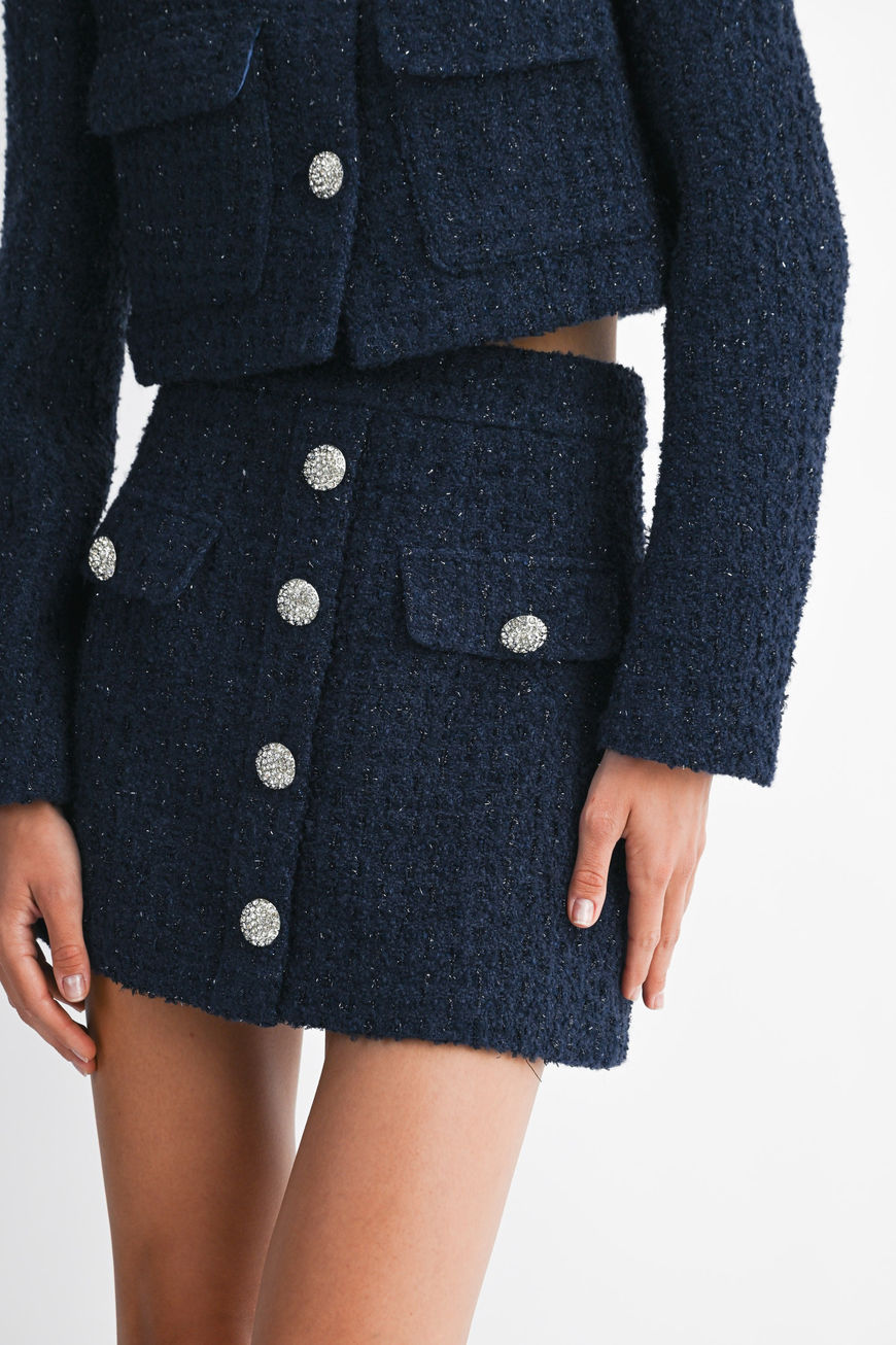 Rhinestone Button Lurex Tweed Jacket & Mini Skirt Set